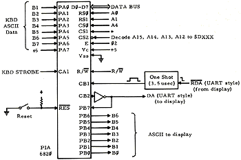 | FFEB FFED FFEF FFF2 FFF4 FFF7 FFF8 FFFA FFFC FFFE | 90 02 69 09 2C 12 D0 30 FB 8D 12 D0 60 00 00 00 0F 00 FF 00 00 | ECHO (unused) (NMI) (RESET) (IRQ) | BCC ECHO ADC #$06 BIT DSP BMI ECHO STA DSP RTS | Yes, output it. Add offset for letter. DA bit (B7) cleard yet? No, wait for display. output character. Sets DA. Return. |