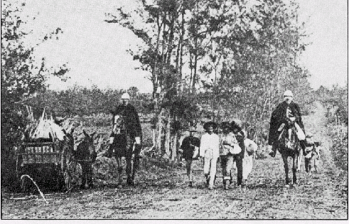 Gendarmes escortant des prisonniers: au début du XXe siècle, les faibles forces de l'ordre présentes à la Réunion ne suffisaient pas à assurer la sécurité des campagnes. (Collection André Blay).