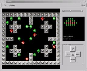 KAtomic is a little program for the KDE. You have to recreate the given molecul (on the right side as you can see below) with the atoms in left field. Game has got 67 levels, up to now. It's written in C++ using Qt/Kde.